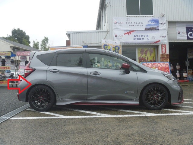 純正noteへ足とインチアップ 日産 ノートnismo S 足まわり サスペンション ブレーキ 足まわり サスペンション ブレーキ サスペンションパーツ関連取付 アフターパーツ取り付け事例 コクピット 麻生 お店の得意技紹介