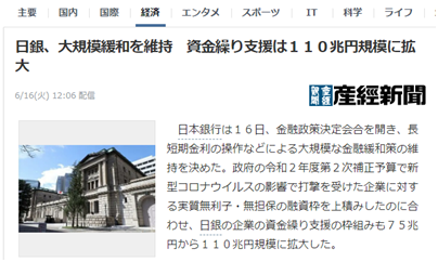 人民日報海外ネットメディアセンター 公式 On Twitter 日本新闻速报 Nhk新闻日本银行6月24日 公开了此前在15日与16日召开的 金融政策决议会议的意见 本次会议 日本银行表示自3月以来 受新型冠状肺炎疫情影响 日本政府强化了金融缓和政策 政府发放110兆日元的